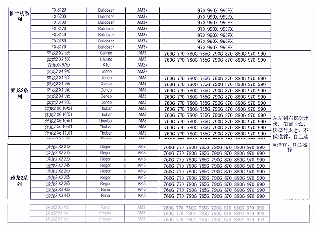 信息高速发展的今天,有很多朋友试图自己购买配件组装一台电脑,在组装安装的过程中既能锻炼自己的动手能力,也有做事成功后的喜悦心情。在现在的两大主流处理器平台包括了AMD系列和Intel系列,而在这两大家族中从早期的架构到现今的最新平台,不同处理器所选用的主板是不同的,身为外行的初步试水者更是无从下手,在这里中山电脑维修的强王电脑就给大家罗列一下处理器和所对应的主板。这一期先接受AMD系列!