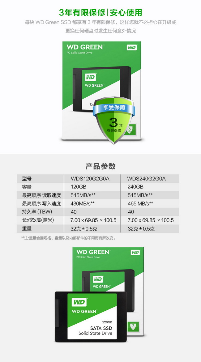西部数据SSD固态硬盘120G