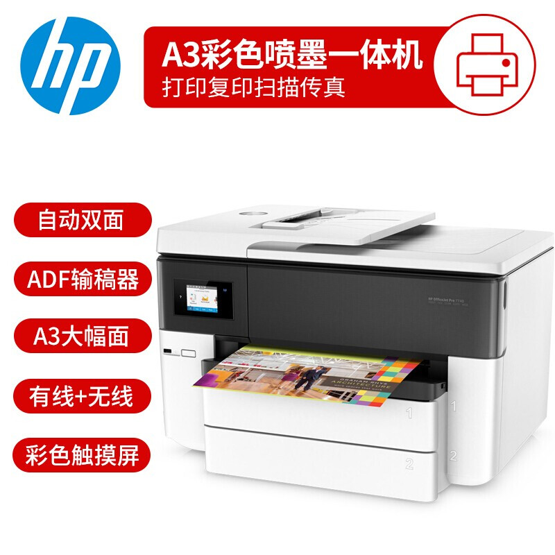 惠普7740A3四合一自动双面带无线双纸盒全A3打印机